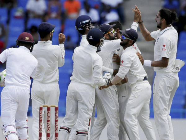 വെസ്റ്റ് ഇൻഡീസിൽ ചരിത്ര വിജയം നേടിയ ഇന്ത്യൻ ടീമിൻറെ ആഹ്ലാദം.