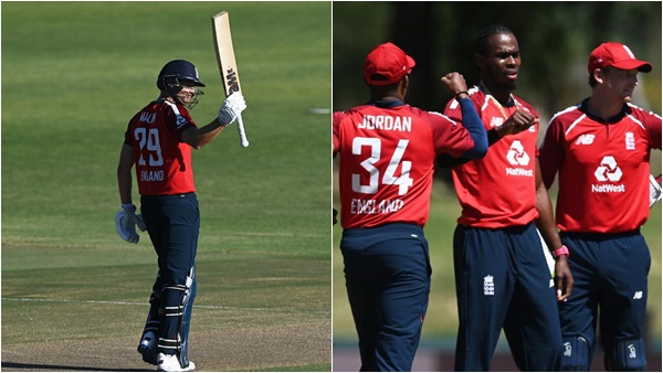മറുപടിക്കിറങ്ങിയ ഇംഗ്ലണ്ടിനും പ്രതീക്ഷിച്ച തുടക്കം ലഭിച്ചില്ല. ജേസന് റോയ് (19 പന്തില് 14),ജോസ് ബട്ലര് (15 പന്തില് 22),ജോണി ബെയര്സ്റ്റോ (7 പന്തില് 3),ബെന് സ്റ്റോക്സ് (13 പന്തില് 16) എന്നിവരെല്ലാം മടങ്ങിയപ്പോള് ടീം പ്രതിസന്ധിയിലായെങ്കിലും മലാന്റെ ബാറ്റിങ് കരുത്തായി. 7 ഫോറും 1 സിക്സുമാണ് മലാന് നേടിയത്. ഓയിന് മോര്ഗന് (17 പന്തില് 26*) പുറത്താവാതെ നിന്നു. മൂന്ന് ഫോറും 1 സിക്സുമായി നിറഞ്ഞ് കളിച്ച മോര്ഗനാണ് അവസാന ഓവറില് ടീമിന് വിജയം സമ്മാനിച്ചത്. ദക്ഷിണാഫ്രിക്കയ്ക്കുവേണ്ടി ഷംസി മൂന്ന് വിക്കറ്റും ലൂങ്കി എന്ഗിഡി രണ്ട് വിക്കറ്റും വീഴ്ത്തിയപ്പോള് കഗിസോ റബാദ ഒരു വിക്കറ്റും സ്വന്തമാക്കി.
