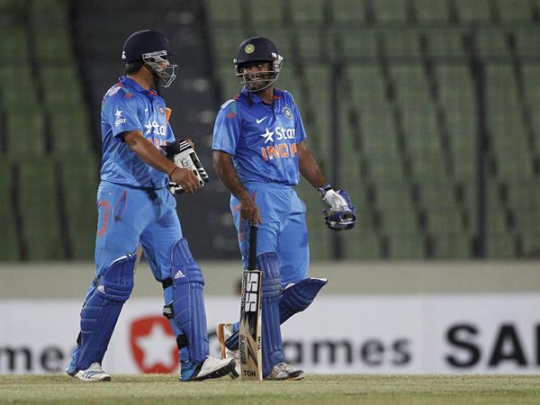 റോബിന് ഉത്തപ്പയും അജിന്ക്യ രഹാനെയും കത്തിക്കയറിയ കളിയില് രസം കൊല്ലിയായി മഴ കൂടി എത്തിയതോടെ എല്ലാം തികഞ്ഞു. ഡക്ക് വര്ത്ത് ലൂയിസ് നിയമ പ്രകാരം പുനര് നിശ്ചയിച്ച വിജയലക്ഷ്യം ഏഴ് പന്തുകള് ബാക്കി നില്ക്കേ ഇന്ത്യ മറികടന്നു. രഹാനെ 64, ഉത്തപ്പ 50 എന്നിങ്ങനെയാണ് ഓപ്പണര്മാരുടെ സ്കോറുകള്. ഐ പി എല്ലിലെ മികച്ച ഫോം തുടരുന്ന ഉത്തപ്പ വര്ഷങ്ങള്ക്ക് ശേഷം ഇന്ത്യന് ടീമില് കിട്ടിയ അവസരം ശരിക്കും വിനിയോഗിച്ചു.