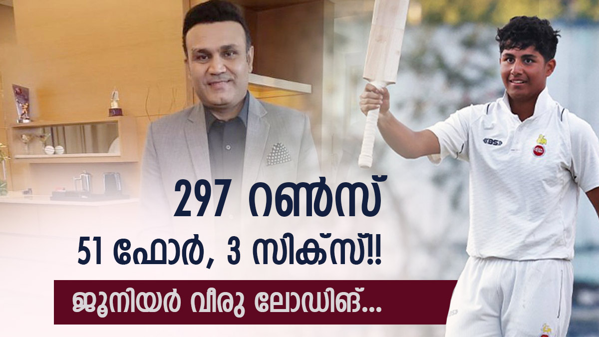ഇപ്പോഴിതാ നവംബറില് കൂച്ച് ബെഹര് ട്രോഫിയില് അച്ഛന്റെ സ്കോറിനെ മറികടന്നിരിക്കുകയാണ് ആര്യവീര് സെവാഗ്. വീരുവിനേക്കാള് നാലു റണ്സ് കൂടുതല് നേടിയാണ് കൗമാര താരം ക്രീസ് വിട്ടത്.