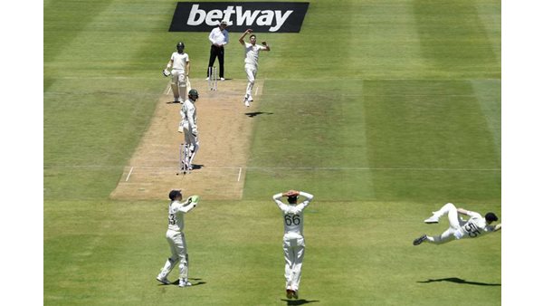 ഒരു ഇന്നിങ്സില് നാല് ക്യാച്ചെന്ന നേട്ടം 23 താരങ്ങള് ഇംഗ്ലണ്ടിനുവേണ്ടി സ്വന്തമാക്കിയിട്ടുണ്ട്. സുബൈര് ഹംസ, ഫഫ് ഡുപ്ലെസിസ്, വാന് ഡെര് ഡൂസന്, പ്രിട്ടോറിയസ്, നോര്ജ എന്നിവരുടെ ക്യാച്ചുകളാണ് സ്റ്റോക്സ് നേടിയത്. ആദ്യ ടെസ്റ്റില് ദക്ഷിണാഫ്രിക്കയോട് പരാജയപ്പെട്ട ഇംഗ്ലണ്ട് രണ്ടാം ടെസ്റ്റില് പിടിമുറുക്കുകയാണ്.
