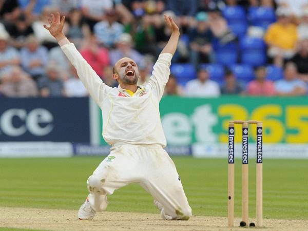 ഒന്നാം ആഷസ് ടെസ്റ്റിനിടെ ഓസ്ട്രേലിയന് സ്പിന്നര് നഥാന് ലിയോമിന്റെ വിഫലമായ ഒരു അപ്പീല്. രണ്ടിന്നിംഗ്സുകളിലുമായി ലിയോണ് ആറ് വിക്കറ്റ് വീഴ്ത്തിയിരുന്നു