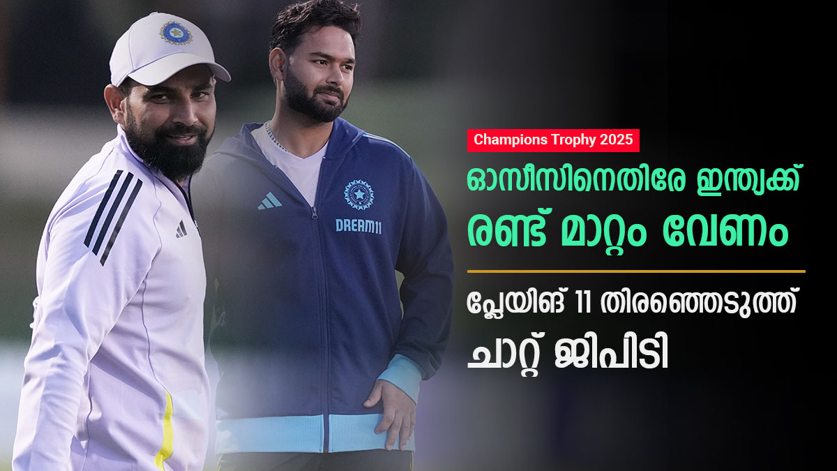 ഓസ്ട്രേലിയയുടെ ഓപ്പണിങ്ങില് ട്രാവിസ് ഹെഡുണ്ട്. തല്ലിത്തകര്ക്കാന് ശേഷിയുള്ള ഹെഡിനെ തുടക്കത്തിലേ പുറത്താക്കുകയെന്ന ഉത്തരവാദിക്കം ഷമിക്കാണ് സ്വാഭാവികമായും നല്കുക. എന്നാല് മോശം ഫോമിലുള്ള താരത്തെ വിശ്വസിക്കുക ഇപ്പോള് പ്രയാസമാവും. ഇന്ത്യ ഷമിക്ക് പകരം ഹര്ഷിത് റാണയെ കളിപ്പിക്കണമെന്നാണ് ചാറ്റ് ജിപിടി നിര്ദേശിക്കുന്നത്. ഷമിയെ പരിക്കും ബാധിച്ചിട്ടുണ്ട്. അതുകൊണ്ടുതന്നെ കാര്യങ്ങള് പ്രയാസമാണെന്ന് തന്നെ പറയാം.