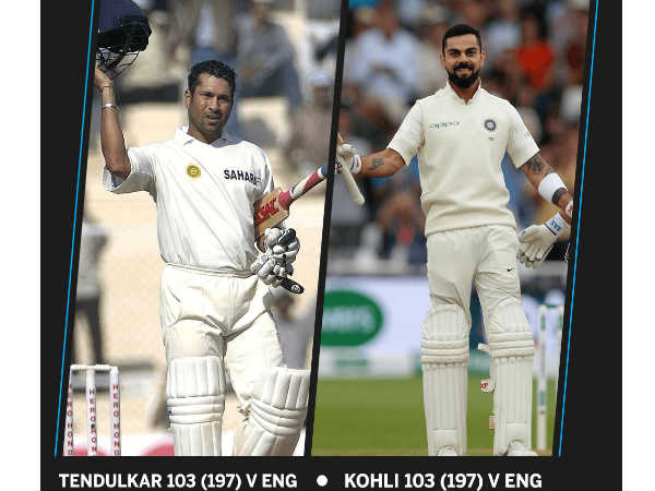 കരിയറിലെ 58ാമത്തെ സെഞ്ച്വറിയാണ് കോലി (103) മൂന്നാം ടെസ്റ്റില് നേടിയത്. 2001ല് ഇതിഹാസ താരം സച്ചിന് ടെണ്ടുല്ക്കറും തന്റെ 58ാം സെഞ്ച്വറി കണ്ടെത്തിയത് ഇംഗ്ലണ്ടിനെതിരേ തന്നെയായിരുന്നുവെന്നതാണ് രസകരം. യാദൃശ്ചികത അതു കൊണ്ടും തീരുന്നില്ല. സച്ചിനും അന്ന് ഇംഗ്ലണ്ടിനെതിരേ 103 റണ്സാണ് എടുത്തത്. കൂടാതെ ഇരുവരും ഒരേ പന്തുകളില് തന്നെയാണ് ഇത്രയും റണ്സെടുത്തത് എന്ന യാദൃശ്ചികത കൂടിയുണ്ട്. കോലിക്കും സച്ചിനും 103 റണ്സെടുക്കാന് വേണ്ടിവന്നത് 197 പന്താണ്!!.