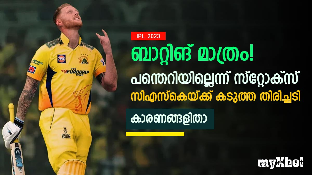 അവസാന സീസണില് ഒമ്പതാം സ്ഥാനത്തായിരുന്നു സിഎസ്കെ. അതുകൊണ്ട് തന്നെ ഈ സീസണില് ടീമിന് വലിയ തിരിച്ചുവരവ് നടത്തേണ്ടതായുണ്ട്. ഡ്വെയ്ന് ബ്രാവോ അവസാന സീസണോടെ വിരമിച്ച ഒഴിവിലേക്ക് സിഎസ്കെ പരിഗണിച്ച താരമാണ് ബെന് സ്റ്റോക്സ്. ഇംഗ്ലണ്ടിന്റെ വെടിക്കെട്ട് ഓള്റൗണ്ടറെ വലിയ പ്രതീക്ഷയോടെയാണ് സിഎസ്കെ ടീമിലെത്തിച്ചതെങ്കിലും ഇപ്പോള് തിരിച്ചടിയായി ഒരു റിപ്പോര്ട്ട് പുറത്തുവന്നിരിക്കുകയാണ്.