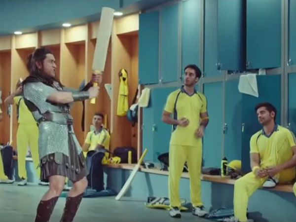 ഒരു ടീമിന്റെ ഡ്രസിങ് റൂമില് നടക്കുന്ന സംഭവങ്ങളാണ് പരസ്യത്തിലുള്ളത്. തന്റെ ഐപിഎല് ടീമായ ചെന്നൈ സൂപ്പര്കിങ്സിനെ അനുസ്മരിപ്പിക്കുന്ന മഞ്ഞ നിറത്തിലുള്ള ജഴ്സിയയാണ് ധോണിയൊഴികെ മറ്റു താരങ്ങള് ധരിച്ചിരിക്കുന്നത്.
