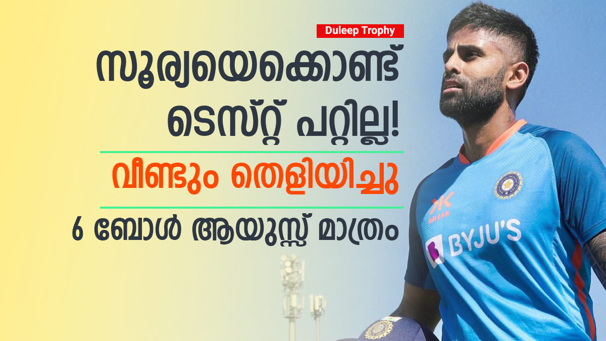 ഇന്ത്യയുടെ സ്വന്തം 360 ബാറ്ററെന്നു വിശേഷിപ്പിക്കപ്പെടുന്ന സൂര്യകുമാര് യാദവ് ദുലീപ് ട്രോഫിയുടെ ഫൈനലില് ബാറ്റിങില് വന് ഫ്ളോപ്പായി മാറി. ടി20 ഫോര്മാറ്റല്ലാതെ മറ്റൊന്നും തനിക്കു വഴങ്ങില്ലെന്ന് ഒരിക്കല്ക്കൂടി ഈ കളിയിലും അദ്ദേഹം തെളിയിച്ചിരിക്കുകയാണ്. റെഡ് ബോള് ക്രിക്കറ്റില് ഇന്ത്യന് ടീമിലേക്കു തന്റെ സ്ഥാനത്തിനു വേണ്ടി അവകാശവാദമുന്നയിക്കാന് സ്കൈയ്ക്കു ലഭിച്ച സുവര്ണാവസരമായിരുന്നു ഇത്. പക്ഷെ സൂര്യ ഇതു കളഞ്ഞുകുളിക്കുകയും ചെയ്തു.