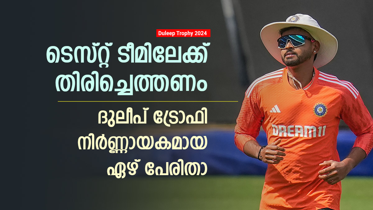 മുന് ഇന്ത്യന് ഓപ്പണറായ മായങ്ക് യാദവും തിരിച്ചുവരവ് പ്രതീക്ഷിക്കുന്നു. അതുകൊണ്ടുതന്നെ താരത്തിനും ദുലീപ് ട്രോഫി മുതലാക്കേണ്ടതായുണ്ട്. റിഷഭ് പന്തിന് ടെസ്റ്റ് ടീമില് സ്ഥാനമുണ്ടെങ്കിലും ദുലീപ് ട്രോഫിയില് മികവ് കാട്ടേണ്ടത് അത്യാവശ്യമാണ്. റിഷഭും ഫോം തെളിയിക്കേണ്ടത് അത്യാവശ്യമാണെന്നാണ് ഗംഭീറിന്റെ നിലപാട്. എന്തായാലും ഫോം വിലയിരുത്തിയാവും ഇന്ത്യയുടെ ടീം തിരഞ്ഞെടുപ്പുണ്ടാവുകയെന്ന് പ്രതീക്ഷിക്കാം.