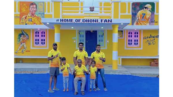 ധോണിയോടും സിഎസ്കെ ടീമിനോടുമുള്ള ആരാധന മൂത്ത് ഒരു ആരാധകന് വീടിനെ മഞ്ഞയില് 'കുളിപ്പിച്ച' ചിത്രമാണ് ഇപ്പോള് ക്രിക്കറ്റ് പ്രേമികള്ക്കിടയില് വൈറലായിക്കൊണ്ടിരിക്കുന്നത്. ചെന്നൈ സൂപ്പര് കിങ്സ് തന്നെയാണ് ഈ ചിത്രങ്ങള് തങ്ങളുടെ ട്വിറ്റര് അക്കൗണ്ടിലൂടെ ആരാധകരുമായി പങ്കു വച്ചിരിക്കുന്നത്. തമിഴ്നാട്ടില് നിന്നുള്ള ഒരു ആരാധകന്റേതാണ് ഈ വീട്. ധോണി ആരാധകന്റെ വീടെന്നാണ് തന്റെ വീടിന് ഈ ആരാധകന് പേര് നല്കിയിരിക്കുന്നത്. സിഎസ്കെ ജഴ്സിയില് ധോണിയുടെ ഛായാചിത്രങ്ങള് വീട്ടിന്റെ മുന്ഭാഗത്ത് ഇരുവശങ്ങളിലും കാണാം. വീടിന്റെ വശത്ത് ചെന്നൈ സൂപ്പര് കിങ്സെന്ന് വലുതായി നല്കിയിട്ടുമുണ്ട്.