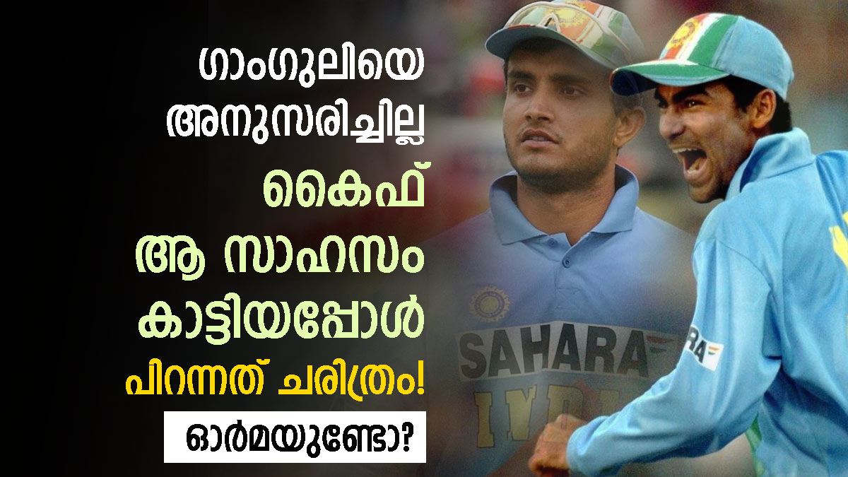 എന്നാല് ഗാംഗുലിയുടെ വാക്കുകള് ധിക്കരിക്കാന് കൈഫ് ധൈര്യം കാട്ടി. ഗാംഗുലിയുടെ നിര്ദേശം ലഭിച്ചതിന് ശേഷമുള്ള തൊട്ടടുത്ത പന്ത് കൈഫ് സിക്സര് പറത്തുകയാണ് ചെയ്തത്. ഗാംഗുലിയുടെ നിര്ദേശവും പിന്നാലെ സിക്സുകൊണ്ടുള്ള കൈഫിന്റെ മറുപടിയും ഇന്നും ഇന്ത്യന് ആരാധകര്ക്ക് ആവേശം നല്കുന്ന കാഴ്ചയാണ്. സഹീര് ഖാനെ കൂട്ടുപിടിച്ച് ഇന്ത്യയെ കൈഫ് വിജയത്തിലേക്കെത്തിച്ചത് എന്നെന്നും ആരാധക മനസില് നിറഞ്ഞുനില്ക്കുന്ന കാഴ്ചയാണ്.