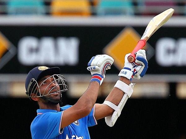 തലയ്ക്ക് മുകളില് പന്തടിച്ചു കൊടുത്തശേഷം അത് നോക്കി നില്ക്കുന്ന അജിന്ക്യ രഹാനെ