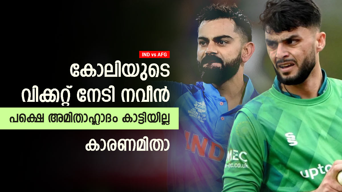 നവീനെ കോലി പഞ്ഞിക്കിടുമെന്നാണ് ആരാധകര് പ്രതീക്ഷിച്ചിരുന്നത്. എന്നാല് കോലിയുടെ ഈഗോ മുതലാക്കി നവീന് വിക്കറ്റ് നേടുകയായിരുന്നു. നവീനെ ഒരു ബൗണ്ടറി പറത്തിയ ശേഷം തൊട്ടടുത്ത പന്തിലും ബൗണ്ടറി ആവര്ത്തിക്കാനാണ് കോലി ശ്രമിച്ചത്. എന്നാല് പ്രതീക്ഷിച്ച ടൈമിങ് ലഭിക്കാതെ വന്നതോടെ ഇബ്രാഹിം സദ്രാന് ക്യാച്ച് നല്കി കോലി മടങ്ങുകയായിരുന്നു. കോലി ആരാധകരെ സംബന്ധിച്ച് വലിയ നിരാശയുണ്ടാക്കുന്ന പുറത്താക്കലായിരുന്നു ഇത്.