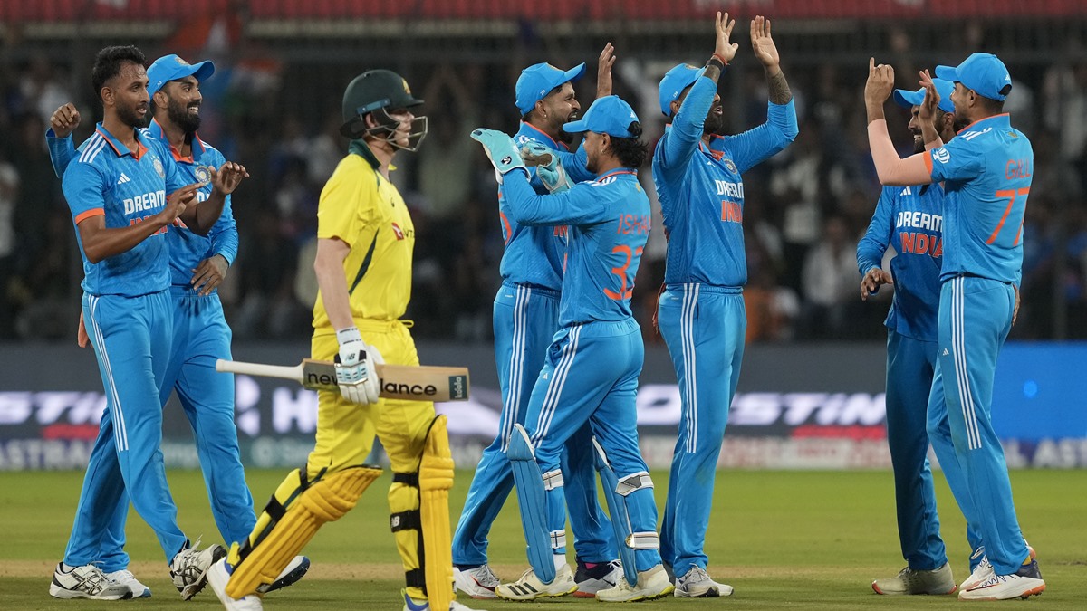 അലക്സ് ക്യാരിയെ (14) രവീന്ദ്ര ജഡേജ ക്ലീന്ബൗള്ഡാക്കി. കാമറൂണ് ഗ്രീനെ (19) ശാര്ദ്ദുല് ടാക്കൂറിന്റെ പന്തില് വിക്കറ്റ് കീപ്പര് ഇഷാന് കിഷന് റണ്ണൗട്ടാക്കി. ആദം സാംബയെ (5) ജഡേജ ക്ലീന്ബൗള്ഡുമാക്കി. ഇതോടെ ഇന്ത്യ ജയമുറപ്പിച്ചു. ശാര്ദ്ദുല് ടാക്കൂറും റുതുരാജ് ഗെയ്ക്വാദും അനായാസ ക്യാച്ചുകള് പാഴാക്കിയത് ഇന്ത്യയുടെ വിജയം വൈകിപ്പിച്ചു. വാലറ്റത്ത് സീന് അബോട്ട് വെടിക്കെട്ട് ബാറ്റിങ്ങോടെ അര്ധ സെഞ്ച്വറി നേടി.