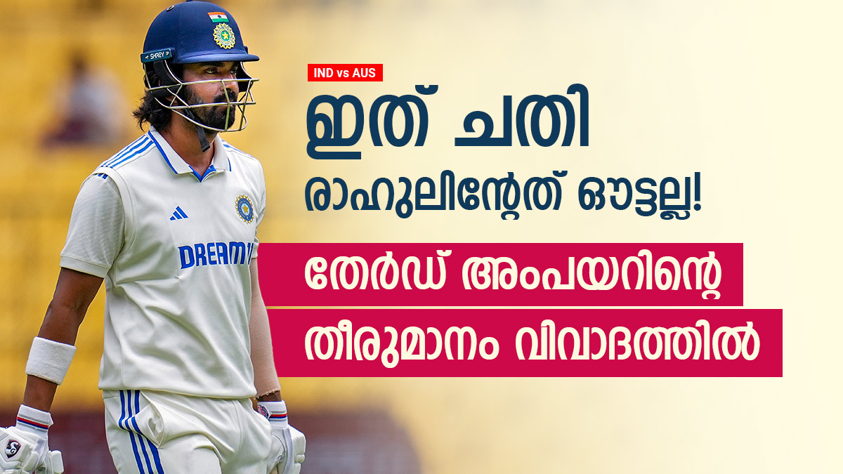 മിച്ചല് സ്റ്റാര്ക്കിന്റെ പന്ത് കെ എല് രാഹുലിന്റെ ബാറ്റിന് തൊട്ടടുത്തുകൂടിയാണ് വിക്കറ്റ് കീപ്പര് അലക്സ് ക്യാരിയുടെ കൈയിലെത്തുന്നത്. ഇതിന് പിന്നാലെ ഓസീസ് താരങ്ങള് അപ്പീല് ചെയ്തു. ഓണ്ഫീല്ഡ് അംപയര് ഇത് നോട്ടാട്ടൗണെന്നാണ് തീരുമാനമെടുത്തത്. എന്നാല് ഓസീസ് റിവ്യൂവെടുത്തതോടെ തീരുമാനം തേര്ഡ് അംപയറിലേക്കെത്തി. തേര്ഡ് അംപയര് ഇത് ഔട്ടാണെന്നാണ് വിധിച്ചത്. രാഹുലിനും ഇന്ത്യന് താരങ്ങള്ക്കും ആരാധകര്ക്കും വിശ്വസിക്കാനാവാത്ത വിധിയായിരുന്നു ഇത്.