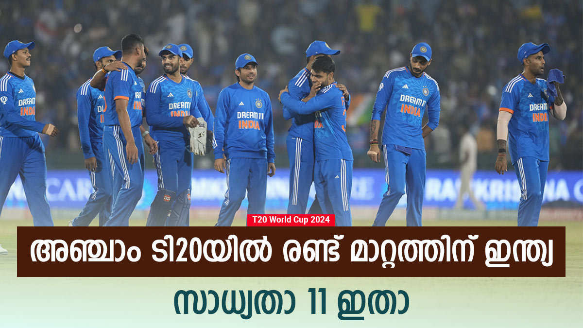ഇന്ത്യയുടെ സാധ്യതാ 11: റുതുരാജ് ഗെയ്ക് വാദ്, യശ്വസി ജയ്സ്വാള്, ശ്രേയസ് അയ്യര്, സൂര്യകുമാര് യാദവ്, ശിവം ദുബെ, ജിതേഷ് ശര്മ, വാഷിങ്ടണ് സുന്ദര്, അക്ഷര് പട്ടേല്, ദീപക് ചഹാര്, രവി ബിഷ്നോയ്, ആവേശ് ഖാന്, മുകേഷ് കുമാര്