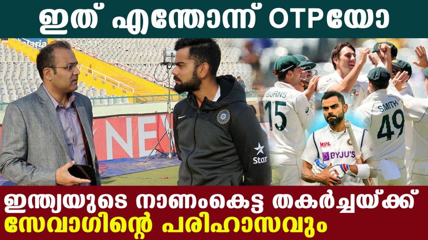 ട്വിറ്റര് പോസ്റ്റിലൂടെയാണ് സെവാഗ് ഇന്ത്യയുടെ ബാറ്റിങ് പ്രകടനത്തെ ട്രോളിയത്. 'ഇത് മറക്കാനുള്ള ഒടിപി 49204084041'- എന്നായിരുന്നു സെവാഗിന്റെ പോസ്റ്റ്. ഇന്ത്യന് താരങ്ങളുടെ സ്കോറുകള് നിരത്തിയാണ് ഒടിപി എന്ന രീതിയില് സെവാഗ് ട്രോളിയത്. ഒരു ഇന്ത്യന് താരത്തിന് പോലും രണ്ടക്കം കാണാനായില്ല എന്നതാണ് ശ്രദ്ധേയം. നൈറ്റ് വാച്ച്മാന് ജസ്പ്രീത് ബൂംറയുടെ പുറത്താകലോടെ ആരംഭിച്ച കൂട്ടത്തകര്ച്ചയാണ് വലിയ നാണക്കേടിലേക്ക് ഇന്ത്യയെ തള്ളിവിട്ടത്.