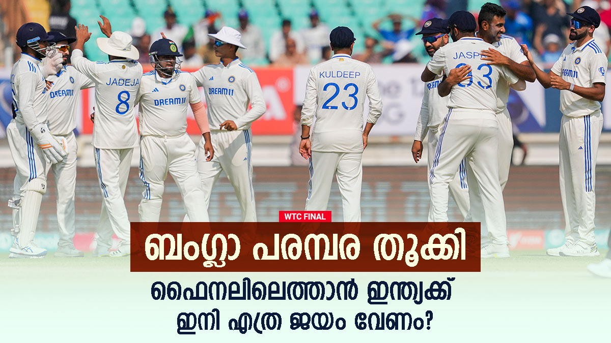 നിലവില് 11 മത്സരത്തില് നിന്ന് എട്ട് ജയത്തോടെ പോയിന്റ് പട്ടികയില് ഇന്ത്യ തലപ്പത്താണുള്ളത്. എന്നാല് ഫൈനലില് ഇന്ത്യ സീറ്റുറപ്പിച്ചെന്ന് പറയാറായിട്ടില്ല. ഇന്ത്യക്ക് ഇനി ബംഗ്ലാദേശിനെതിരായ മൂന്ന് മത്സര ടെസ്റ്റ് പരമ്പര നാട്ടിലും അഞ്ച് മത്സര ടെസ്റ്റ് പരമ്പര ഓസ്ട്രേലിയയുടെ തട്ടകത്തിലുമാണ് ബാക്കിയുള്ളത്. ഇന്ത്യക്ക് ലോക ടെസ്റ്റ് ചാമ്പ്യന്ഷിപ്പ് ഫൈനല് സീറ്റ് നേടാന് ഇനി എത്ര മത്സരങ്ങള് കൂടി ജയിക്കണം? പരിശോധിക്കാം.