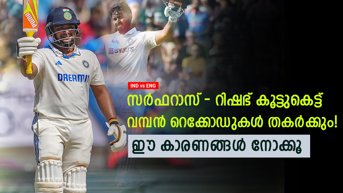 ഇന്ത്യയുടെ മധ്യനിരയില് വെടിക്കെട്ട് ബാറ്റ്സ്മാനായി റിഷഭ് പന്തിന്റെ അഭാവമുണ്ടായിരുന്നു. കാര് അപകടത്തില് പരിക്കേറ്റ റിഷഭ് ഏറെ നാളുകളായി ടീമിന് പുറത്താണ്. മധ്യനിരയില് റിഷഭ് പന്തും സര്ഫറാസ് ഖാനും ഒന്നിച്ച് കളിക്കുന്നത് കാണാന് കാത്തിരിക്കുകയാണ് ആരാധകര്. ഇരുവരും ഒന്നിച്ച് ഇന്ത്യയുടെ മധ്യനിരയില് കളിക്കുമ്പോള് ബാറ്റിങ് വെടിക്കെട്ട് തന്നെ ആരാധകര്ക്ക് പ്രതീക്ഷിക്കാം. ഇരുവരും ഒന്നിച്ച് കളിക്കുന്നത് പല വമ്പന് റെക്കോഡുകളും ഭേദിക്കും.