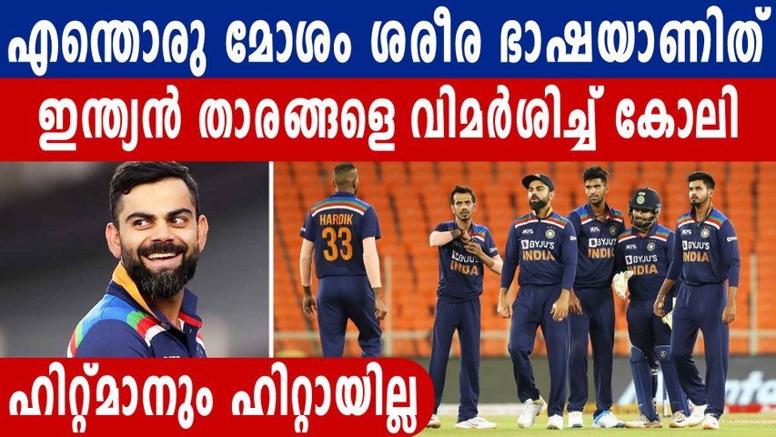 അഹമ്മദാബാദ്: ഇംഗ്ലണ്ടിനെതിരായ മൂന്നാം ടി20യില് ഇന്ത്യ എട്ട് വിക്കറ്റിനാണ് പരാജയം ഏറ്റുവാങ്ങിയത്. ടോസ് നഷ്ടപ്പെട്ട് ആദ്യം ബാറ്റ് ചെയ്ത ആതിഥേയരായ ഇന്ത്യ ആറ് വിക്കറ്റ് നഷ്ടത്തില് 156 റണ്സെടുത്തപ്പോള് മറുപടിക്കിറങ്ങിയ ഇംഗ്ലണ്ട് 10 എട്ട് പന്ത് ബാക്കി നില്ക്കെ രണ്ട് വിക്കറ്റ് ബാക്കി നിര്ത്തി വിജയം സ്വന്തമാക്കുകയായിരുന്നു. ബാറ്റിങ്ങിലും ബൗളിങ്ങിലും ആധിപത്യം കാട്ടാന് ഇന്ത്യക്ക് സാധിച്ചില്ല. ഇപ്പോഴിതാ ഇന്ത്യന് താരങ്ങളുടെ ഫീല്ഡിങ്ങിനിറങ്ങിയപ്പോഴുള്ള ശരീര ഭാഷയെ വിമര്ശിച്ചിരിക്കുകയാണ് നായകന് വിരാട് കോലി.