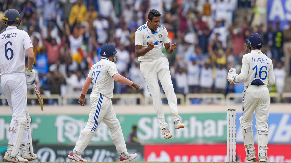 ബെന് ഫോക്സിനെ (17) അശ്വിന് എല്ബിയില് കുടുക്കിയപ്പോള് ജെയിംസ് ആന്ഡേഴ്സനെ (0) അശ്വിന് ജുറേലിന്റെ കൈയിലുമെത്തിച്ചു. ഇതോടെ 145 റണ്സില് ഇംഗ്ലണ്ട് ഓള്ഔട്ടായി. ഇന്ത്യക്കായി ആര് അശ്വിന് അഞ്ച് വിക്കറ്റും കുല്ദീപ് യാദവ് നാല് വിക്കറ്റും വീഴ്ത്തിയപ്പോള് രവീന്ദ്ര ജഡേജ 1 വിക്കറ്റും വീഴ്ത്തി.