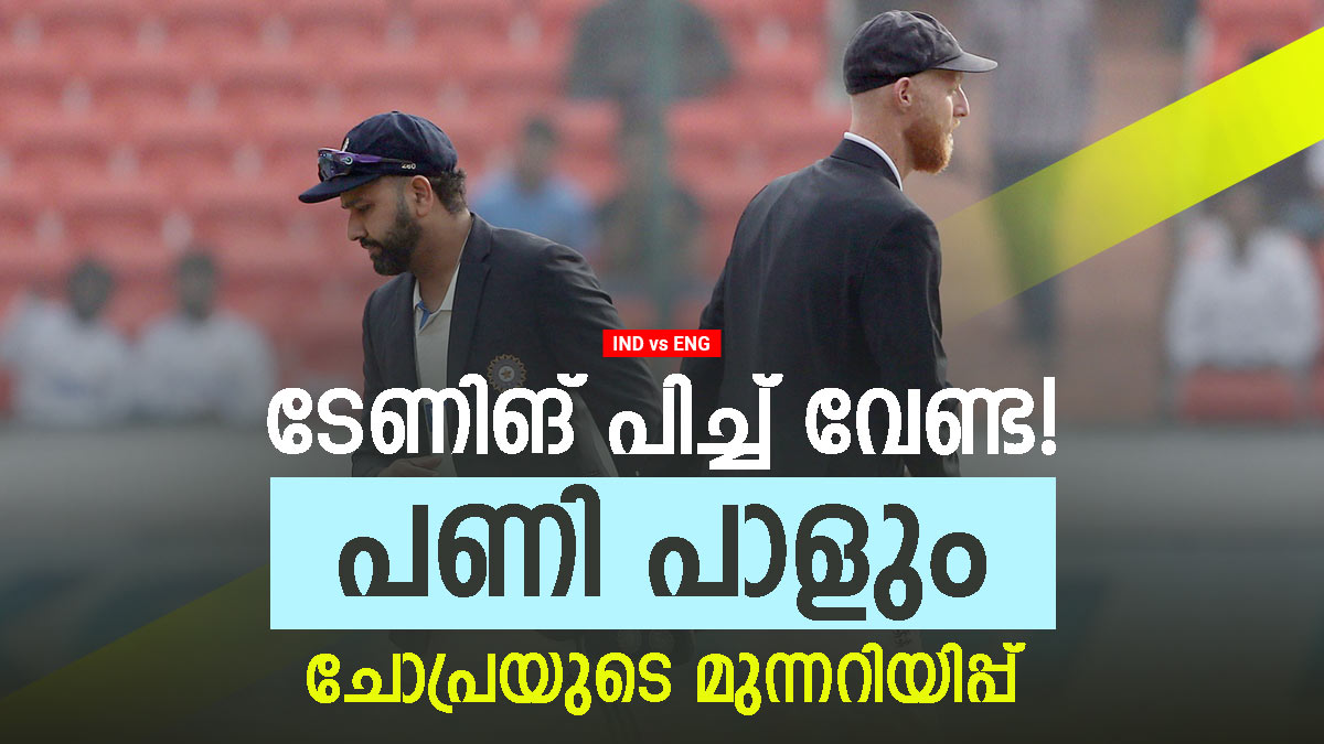 ഇംഗ്ലണ്ടിനെതിരേ ഹൈദരാബാദിലെ ആദ്യത്തെ ടെസ്റ്റിലെ പിച്ച് ഭേദപ്പെട്ടതായിരുന്നു. അതു കുറച്ചുകൂടി നന്നാക്കാമായിരുന്നു. ആദ്യദിനം കൂടുതല് ടേണുള്ളതായി കാണപ്പെട്ടു. ബൗണ്സും പേസും ഈ പിച്ചിനുണ്ടായിരുന്നു. അതിനെ ഇല്ലാതാക്കാനുള്ള ശ്രമം നടന്നതായി എനിക്കു തോന്നുന്നു. ഇതു ശരിയായിരുന്നില്ലെന്നും ചോപ്ര വിശദമാക്കി.
