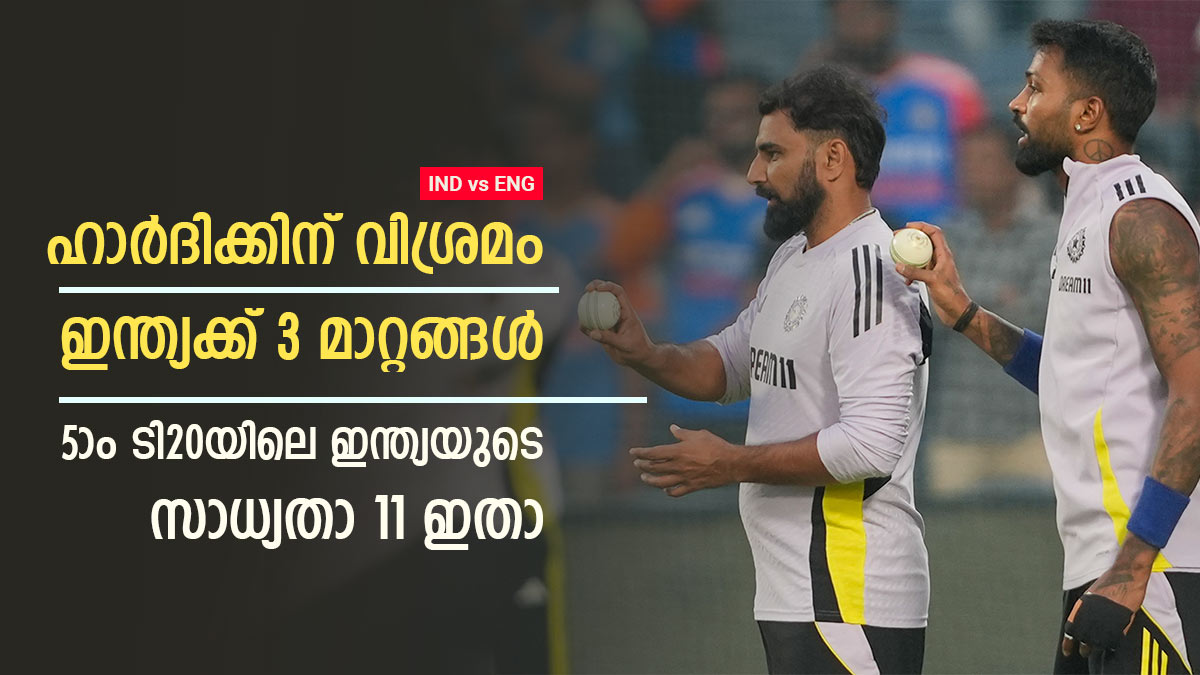 ഇന്ത്യ പരമ്പര നേടിയതിനാല്ത്തന്നെ അഞ്ചാം ടി20യില് ചില താരങ്ങള്ക്ക് ഇന്ത്യ വിശ്രമം നല്കിയേക്കും. ടി20 പരമ്പരക്ക് ശേഷം ഏകദിന പരമ്പരയും വരാനിരിക്കുന്നതിനാല് ചില താരങ്ങള്ക്ക് വിശ്രമം നല്കേണ്ടത് അനിവാര്യമാണെന്ന് തന്നെ പറയാം. അഞ്ചാം ടി20യില് ഇന്ത്യയുടെ പ്ലേയിങ് 11 മാറ്റങ്ങളുണ്ടാവുമെന്ന് ഉറപ്പാണ്. ഇന്ത്യ കളത്തിലിറക്കാന് സാധ്യതയുള്ള പ്ലേയിങ് 11 ആരൊക്കെയാവും ഉള്പ്പെടുകയെന്ന് പരിശോധിക്കാം.
