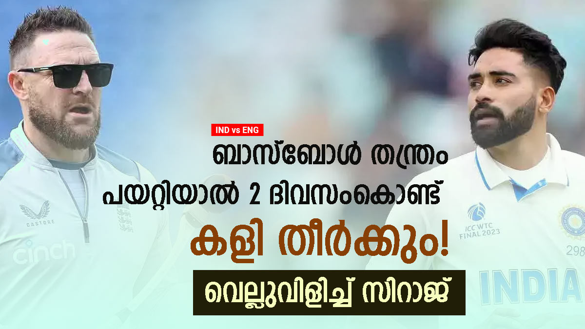 ഇക്കാര്യം ഇംഗ്ലണ്ട് വ്യക്തമാക്കുകയും ചെയ്തിട്ടുണ്ട്. ടെസ്റ്റിന്റെ പരമ്പരാഗത ശൈലിയുടെ പൊളിച്ചെഴുത്തായ ആക്രമണ രീതിയാണ് ബാസ്ബോള് ശൈലിയിലൂടെ ഇംഗ്ലണ്ട് മുന്നോട്ട് വെക്കാന് പോകുന്നത്. ഇപ്പോഴിതാ ഇംഗ്ലണ്ട് ബാസ്ബോള് ശൈലിയുമായി വന്നാല് 2 ദിവസംകൊണ്ട് കളിതീര്ക്കുമെന്ന മുന്നറിയിപ്പ് നല്കിയിരിക്കുകയാണ് ഇന്ത്യന് പേസര് മുഹമ്മദ് സിറാജ്. അതിന്റെ കാരണവും സിറാജ് വ്യക്തമാക്കുന്നുണ്ട്. ജിയോ സിനിമയില് സംസാരിക്കുകയായിരുന്നു സിറാജ്.