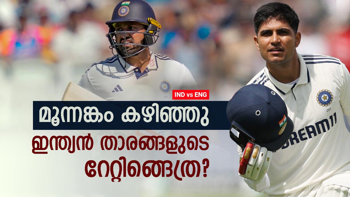 ഇന്ത്യന് മധ്യനിരയിലേക്കു വന്നാല് മറുനാടന് മലയാളി താരം കരുണ് നായരും ഒരു ടെസ്റ്റ് മാത്രം കളിച്ച സായ് സുദര്ശനും ഫ്ളോപ്പായപ്പോള് ക്യാപ്റ്റന് ശുഭ്മന് ഗില് കസറുക തന്നെ ചെയ്തു. ഏറ്റവും മോശം റേറ്റിങുള്ളത് കരുണിനാണ്. 10ല് വെറും രണ്ടു മാത്രം.