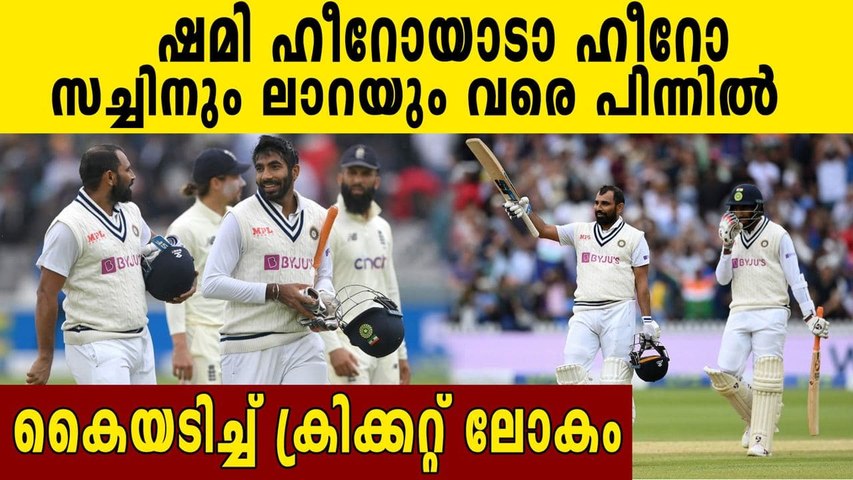 രണ്ടാം ഇന്നിങ്സില് 56 റണ്സാണ് മുഹമ്മദ് ഷമി നേടിയത്. ലോര്ഡ്സില് സച്ചിന് ടെണ്ടുല്ക്കര്, റിക്കി പോണ്ടിങ്, ജാക്സ് കാലിസ്, എബി ഡിവില്ലിയേഴ്സ് എന്നിവരേക്കാളൊക്കെ ഉയര്ന്ന സ്കോറെന്ന നേട്ടമാണ് ഷമി നേടിയത്.
