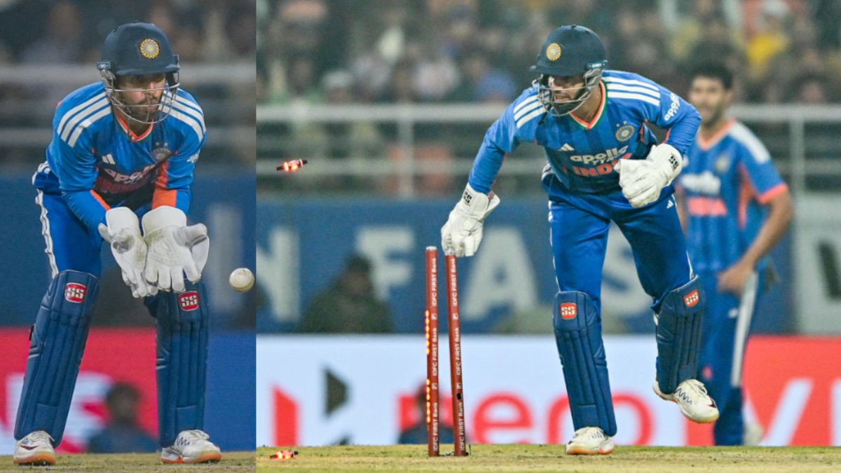 ഇതിനിടെ വായുവില് തന്റെ തലയ്ക്കു മകളിലുയര്ന് ബോള് ജിതേഷ് തന്റെ ഇടതു കൈ കോണ്ട്ു തടുത്ത ശേഷം വലതു കൈയിലേക്കിട്ട് അതേ സെക്കന്റില് ഒറ്റക്കൈ കൊണ്ട് സ്റ്റംപിങ് നടത്തുകയായിരുന്നു.