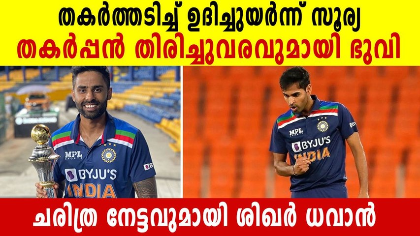 ഇടവേളക്ക് ശേഷം ഭുവനേശ്വര് കുമാര് മികച്ച ഫോമിലേക്കെത്തിയ മത്സരമായിരുന്നു ഇത്. 3.3 ഓവറില് 22 റണ്സ് വഴങ്ങി നാല് വിക്കറ്റാണ് ഭുവി വീഴ്ത്തിയത്. ഇതോടെ 250 അന്താരാഷ്ട്ര വിക്കറ്റെന്ന നേട്ടം അദ്ദേഹം പൂര്ത്തിയാക്കി. കൂടാതെ ശ്രീലങ്കയിലെ ഇന്ത്യന് ബൗളറുടെ രണ്ടാമത്തെ പ്രകടനവും ഭുവി സ്വന്തം പേരിലാക്കി. 19 റണ്സ് വഴങ്ങി നാല് വിക്കറ്റ് വീഴ്ത്തിയ അശോക് ഡിന്ഡയാണ് തലപ്പത്ത്. 2012ലായിരുന്നു ഈ പ്രകടനം.