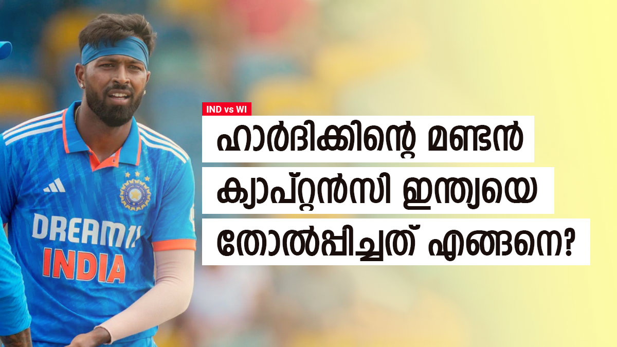 വെസ്റ്റ് ഇന്ഡീസ് പരമ്പരയില് ഇന്ത്യയെ പിന്നോട്ടടിച്ച ക്യാപ്റ്റന് ഹാര്ദിക് പാണ്ഡ്യയുടെ പിഴവുകള് എന്തൊക്കെയാണെന്ന് നോക്കാം. ഒന്നാമത്തെ കാര്യം അനാവശ്യമായ പരീക്ഷണങ്ങളായിരുന്നു. സഞ്ജു സാംസണെ ഉപയോഗിച്ച രീതി ശരിയായില്ല. ടോപ് ഓഡര് ബാറ്റ്സ്മാനായ സഞ്ജുവിനെ മധ്യനിരയില് പരീക്ഷിച്ചത് മണ്ടത്തരമായി. തിലക് വര്മയെ അഞ്ചാം നമ്പറിലോ ആറാം നമ്പറിലോ ഉപയോഗിക്കുന്നതായിരുന്നു കൂടുതല് നന്നായിരുന്നത്.