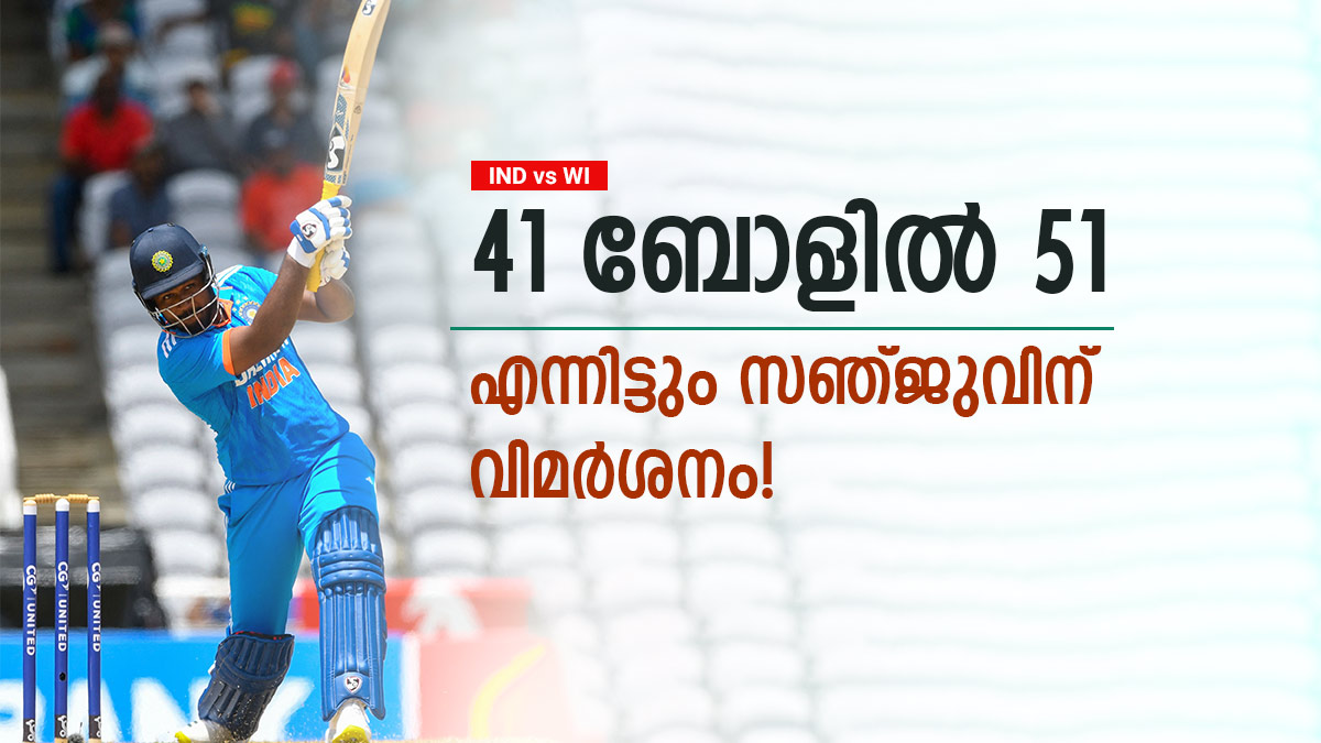 സോഷ്യല് മീഡിയയിലാണ് അദ്ദേഹം വലിയ വിമര്ശനങ്ങള് നേരിടുന്നത്. തുടരെ രണ്ടു വിക്കറ്റുകള് നഷ്ടമായി ഇന്ത്യ സ്തബ്ധരായി നില്ക്കവെയായിരുന്നു സഞ്ജു നാലാമനായി ക്രീസിലെത്തിയത്. കളിയില് പിടിമുറുക്കാന് വിന്ഡീസ് ബൗളര്മാര് ശ്രമിക്കവെ കൗണ്ടര് അറ്റാക്കിങ് ഗെയിം പുറത്തെടുത്ത് സഞ്ജു അവരെ വിറപ്പിക്കുകയായിരുന്നു.