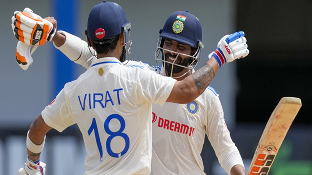 നാല് വിക്കറ്റിന് 288 എന്ന നിലയില് രണ്ടാം ദിനം കളി ആരംഭിച്ച ഇന്ത്യക്ക് അടിത്തറ പാകാന് വിരാട് കോലിക്കും രവീന്ദ്ര ജഡേജയ്ക്കുമായി. ആരാധകരുടെ പ്രതീക്ഷ കാത്ത് ഇടവേളക്ക് ശേഷം വിരാട് കോലി ടെസ്റ്റ് സെഞ്ച്വറി നേടി. 206 പന്തുകള് നേരിട്ട് 11 ബൗണ്ടറികള് ഉള്പ്പെടെ 121 റണ്സ് നേടിയാണ് കോലി പുറത്തായത്. അല്സാരി ജോസഫിന്റെ ഡയറക്ട് ത്രോയില് കോലി റണ്ണൗട്ടാവുകയായിരുന്നു.