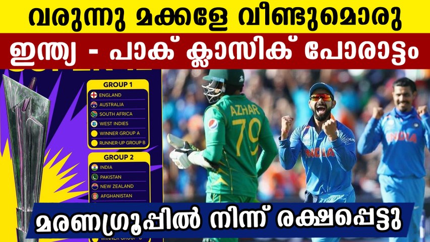 ഒക്ടോബറില് യുഎഇ, ഒമാന് എന്നീവിടങ്ങളിലായി നടക്കാനിരിക്കുന്ന ടി20 ലോകകപ്പിന്റെ ഗ്രൂപ്പുകള് ഐസിസി പ്രഖ്യാപിച്ചു. ഇന്ത്യയും ചിരവൈരികളായ പാകിസ്താനും ഒരേ ഗ്രൂപ്പിലാണ് ഉള്പ്പെട്ടിട്ടുള്ളത് എന്നതാണ് ക്രിക്കറ്റ് പ്രേമികളെ സംബന്ധിച്ച് ആഹ്ലാദിക്കാന് വക നല്കുന്ന കാര്യമാണ്. ഗ്രൂപ്പ് രണ്ടിലാണ് ഇന്ത്യയുടെ സ്ഥാനം. പാകിസ്താനെക്കൂടാതെ ന്യൂസിലാന്ഡ്, അഫ്ഗാനിസ്താന്, ഗ്രൂപ്പ് എ റണ്ണറപ്പ്, ഗ്രൂപ്പ് ബി വിജയി എന്നിവരാണ് ഗ്രൂപ്പിലെ മറ്റു ടീമുകള്. എന്നാല് ഗ്രൂപ്പ് ഒന്നാണ് ടൂര്ണമെന്റിലെ മരണഗ്രൂപ്പ്. നിലവിലെ ചാംപ്യന്മാരായ വെസ്റ്റ് ഇന്ഡീസ്, മുന് ജേതാക്കളായ ഇംഗ്ലണ്ട്, ഓസ്ട്രേലിയ, സൗത്താഫ്രിക്ക, ഗ്രൂപ്പ് എയിലെ വിജയികള്. ഗ്രൂപ്പ് ബിയിലെ റണ്ണറപ്പ് എന്നിവരാണ് ഗ്രൂപ്പ് ഒന്നിലുള്ളത്.