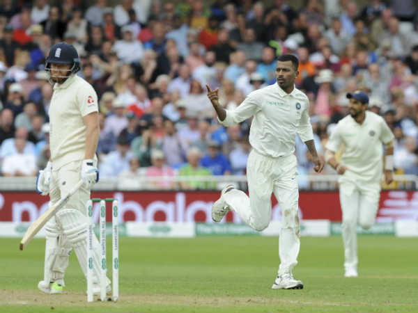 ഉജ്ജ്വല ബൗളിങിലൂടെ ആതിഥേയരെ ഇന്ത്യ വരിഞ്ഞുകെട്ടുകയായിരുന്നു. അഞ്ചു വിക്കറ്റെടുത്ത ഹര്ദിക് പാണ്ഡ്യയാണ് ഇംഗ്ലണ്ടിന്റെ കഥ കഴിച്ചത്. ആറോവറില് ഒരു മെയ്ഡനുള്പ്പെടെ 28 റണ്സ് മാത്രം വിട്ടുകൊടുത്താണ് പാണ്ഡ്യ അഞ്ചു പേരെ പുറത്താക്കിയത്. ടെസ്റ്റ് കരിയറില് താരം ഇതാദ്യമായാണ് അഞ്ചു വിക്കറ്റ് നേട്ടം കൈവരിച്ചത്. ജസ്പ്രീത് ബുംറയും ഇഷാന്ത് ശര്മയും രണ്ടു വിക്കറ്റ് വീതമെടുത്തു. ഇംഗ്ലണ്ട് നിരയില് ഒരാള് പോലും 40 റണ്സ് തികച്ചില്ല. 39 റണ്സെടുത്ത ജോസ് ബട്ലറാണ് ടീമിന്റെ ടോപ്സ്കോറര്. അലെസ്റ്റര് കുക്ക് (29), കീറ്റണ് ജെന്നിങ്സ് (20) എന്നിവരാണ് മറ്റു പ്രധാന സ്കോറര്മാര്.