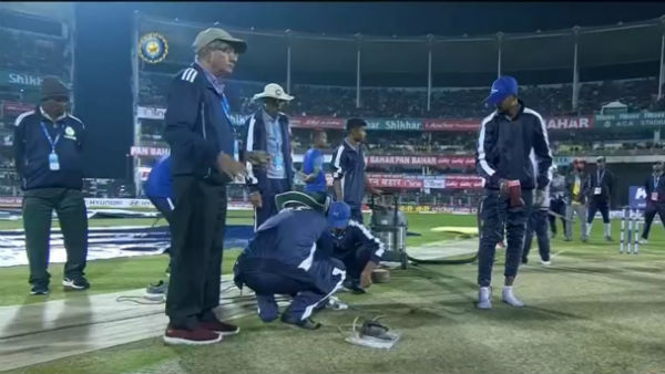 മഴ വീണതും 30 വാര സര്ക്കിള് പൂര്ണമായി മൂടി ഗ്രൗണ്ട് സ്റ്റാഫ് അംഗങ്ങള് പിച്ച് ഭദ്രമാക്കി. 40 മിനിറ്റോളം മഴ നീണ്ടുനിന്നു. മഴ തോര്ന്നതും ക്യുറേറ്ററുടെ നേതൃത്വത്തില് നീല ടാര്പോളീന് കവറുകള് ഇവര് വലിച്ചുമാറ്റി. എന്തുവിധേനയും ബര്സാപര സ്റ്റേഡിയത്തില് മത്സരം നടക്കണമെന്ന ആഗ്രഹം സംഘാടകര്ക്കുണ്ടായിരുന്നു. കാരണം രാജ്യാന്തര മത്സരങ്ങള് ഇവിടെ പതിവല്ല. ഇതിന് മുന്പ് ഇന്ത്യ – ഓസ്ട്രേലിയ ട്വന്റി-20 മത്സരം മാത്രമാണ് ബര്സാപര സ്റ്റേഡിയത്തില് നടന്നിട്ടുള്ളത്.