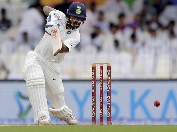 പത്താമത്തെ ഓവറിൽ ഇന്ത്യൻ സ്കോർ 56ൽ എത്തിയപ്പോഴാണ് ശിഖർ ധവാൻ പുറത്തായത്. 37 പന്തിൽ 35 റൺസാണ് ധവാന്റെ സമ്പാദ്യം. ഏകദിനത്തെ ഓർമിപ്പിക്കുന്ന തരത്തിൽ ബാറ്റ് വീശിയ ധവാൻ 5 ഫോറും 1 സിക്സും പറത്തി. മറുവശത്ത് രാഹുൽ 82 പന്തിലാണ് 57 റൺസെടുത്തത്. രാഹുലിന്റെ ബാറ്റിൽ നിന്നും 7 ബൗണ്ടറികൾ പാഞ്ഞു.