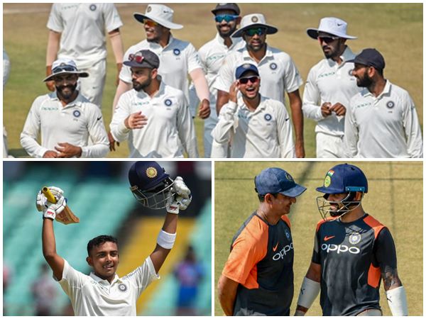 ഒന്നാം ടെസ്റ്റില് അരങ്ങേറ്റക്കാരനായ ഓപ്പണര് പൃഥ്വി ഷായുടെ പ്രകടനമാണ് ഏറ്റവുമധികം ശ്രദ്ധിക്കപ്പെട്ടത്. കന്നി ടെസ്റ്റില് തന്നെ സെഞ്ച്വറി നേടിയാണ് പൃഥ്വി ടീമിലേക്കുള്ള വരവ് ആഘോഷിച്ചത്. ആക്രമിച്ചു കളിച്ച താരം 134 റണ്സ് നേടി ടീമിന് മികച്ച തുടക്കം നല്കുകയും ചെയ്തിരുന്നു. മാന് ഓഫ് ദി മാച്ച് പുരസ്കാരവും പൃഥ്വിക്കു തന്നെയായിരുന്നു.