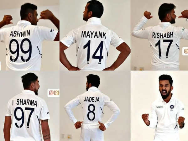 ടെസ്റ്റില് ഇന്ത്യന് താരങ്ങള്ക്കു പ്രത്യേകമായി അനുവദിച്ചിട്ടുള്ള നമ്പറുകളല്ല അവരുടെ ജഴ്സിയില് കുറിച്ചിരിക്കുന്നത്. മറിച്ച് ഏകദിനത്തിലും ടി20യിലും ജഴ്സിയിലുള്ള അതേ നമ്പര് തന്നെയാണ് ടെസ്റ്റിലും ഓരോ താരത്തിനുമുള്ളത്.