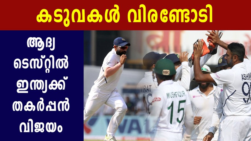 ഇന്ഡോര്: ആദ്യ ടെസ്റ്റിൽ ബംഗ്ലാദേശിനെതിരെ ഇന്ത്യയ്ക്ക് മിന്നും ജയം. ഇന്നിങ്സിനും 130 റൺസിനുമാണ് കോലിപ്പട സന്ദർശകരെ കീഴടക്കിയത്. മൂന്നാം ദിനം, ഇന്ത്യ കുറിച്ച 343 റൺസ് ലീഡ് മറികടക്കാനുള്ള ശ്രമത്തിൽ ബംഗ്ലാദേശിന് പത്തു വിക്കറ്റുകളും നഷ്ടമാവുകയായിരുന്നു. ഷദ്മാൻ ഇസ്ലാം (6), ഇമ്രുൾ കെയ്സ് (6), മോമിനുൾ ഹഖ് (7), മുഹമ്മദ് മിഥുൻ (18) ഉൾപ്പെടുന്ന മുൻനിര രാവിലെത്തന്നെ ഡ്രസിങ് റൂമിൽ തിരിച്ചെത്തി. ഉച്ചഭക്ഷണത്തിന് ശേഷം മഹമ്മദുല്ല, (15) ലിറ്റൺ ദാസ് (35), മുഷ്ഫിഖുർ റഹീം (64), മെഹദി ഹസൻ (38), തയ്ജുൽ ഇസ്ലാം (6), എബാദത് ഹൊസൈൻ (1) എന്നിവരും ഇന്ത്യയ്ക്ക് മുന്നിൽ കീഴടങ്ങി.