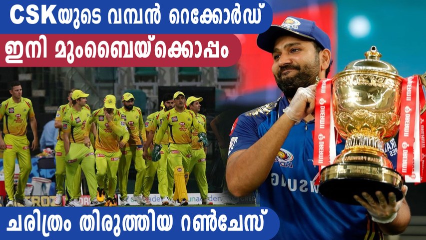 2010, 11 സീസണുകളിലായിരുന്നു ധോണിക്കു കീഴില് തുടരെ രണ്ടു കിരീടങ്ങളുമായി സിഎസ്കെ ചരിത്രം കുറിച്ചത്. ഒമ്പത് വര്ഷങ്ങള്ക്കു ശേഷം സിഎസ്കെയുടെ ഈ നേട്ടത്തിനൊപ്പമെത്തിയിരിക്കുകയാണ് മുംബൈ. 2013, 15, 17, 19 വര്ഷങ്ങളിലായിരുന്നു മുംബൈയുടെ മറ്റു കിരീട വിജയങ്ങള്. ഈ സീസണ് മാറ്റി നിര്ത്തിയാല് ഓരോ വര്ഷത്തെ ഇടവേളയിലാണ് മുംബൈ ചാംപ്യന്മാരായിട്ടുള്ളതെന്നു കാണാം. ഒരു സീസണില് ജേതാക്കളായാല് അടുത്ത സീസണില് അവര്ക്ക് ഇതു ആവര്ത്തിക്കാനായിരുന്നില്ല. ഈ ചരിത്രമാണ് രോഹിത് ശര്മയും സംഘവും യുഎഇയില് തിരുത്തിക്കുറിച്ചത്. മാത്രമല്ല ഒറ്റയക്ക വര്ഷത്തിലായിരുന്നു നേരത്തേ മുംബൈയുടെ കിരീട വിജയങ്ങളെല്ലാമെന്നു കാണാന് സാധിക്കും. ഈ പതിവും 2020ല് മുംബൈ തെറ്റിച്ചിരിക്കുകയാണ്.