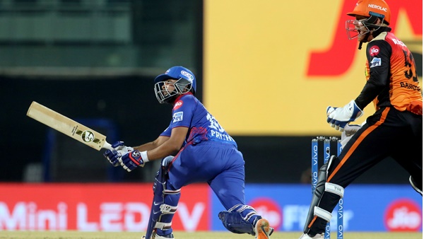 ഡല്ഹി ബാറ്റ്സ്മാന്മാരെ പവര്പ്ലേയില് പിടിച്ചുനിര്ത്താന് ഹൈദരാബാദ് ബൗളര്മാര്ക്കായില്ല. ഖലീല് അഹമ്മദ് എറിഞ്ഞ ആദ്യ ഓവറില് മൂന്ന് ബൗണ്ടറി പായിച്ച് ഗംഭീര തുടക്കമാണ് പൃത്ഥ്വി ഷാ നല്കിയത്. ശിഖര് ധവാന് (26 പന്തില് 28) പിന്തുണ നല്കിയപ്പോള് പൃത്ഥ്വി (39 പന്തില് 53) കടന്നാക്രമിച്ചു. 7 ഫോറും ഒരു സിക്സുമാണ് യുവതാരം നേടിയത്. ഒന്നാം വിക്കറ്റ് കൂട്ടുകെട്ട് ഹൈദരാബാദ് പൊളിക്കുമ്പോള് 10.2 ഓവറില് 81 റണ്സ് ഡല്ഹി സ്കോര്ബോര്ഡില് ചേര്ക്കപ്പെട്ടിരുന്നു.