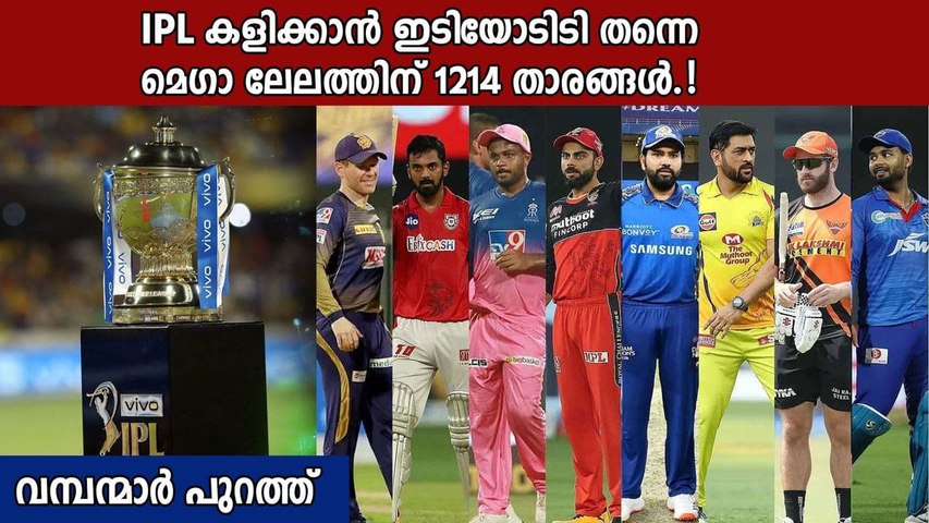മെഗാ ലേലത്തില് ആകെ പേര് രജിസ്റ്റര് ചെയ്തിരിക്കുന്നത് 1214 കളിക്കാരാണെന്നാണ് ബിസിസിഐ അറിയിച്ചിരിക്കുന്നത്. ഇതില് 896 പേര് ഇന്ത്യന് താരങ്ങളും 318 പേര് വിദേശ കളിക്കാരുമാണ്. ഇക്കൂട്ടത്തില് ദേശീയ ടീമിനു വേണ്ടി കളിച്ചിട്ടുള്ളത് 270 താരങ്ങള് മാത്രമാണ്. 903 പേര് ഇനിയും ദേശീയ ടീമിനു വേണ്ടി അരങ്ങേറിയിട്ടില്ല. ഐസിസിയുടെ അസോസിയേറ്റ് രാജ്യങ്ങളിലെ 41 താരങ്ങളും ലേലത്തിനു രജിസ്റ്റര് ചെയ്തിട്ടുണ്ട്.