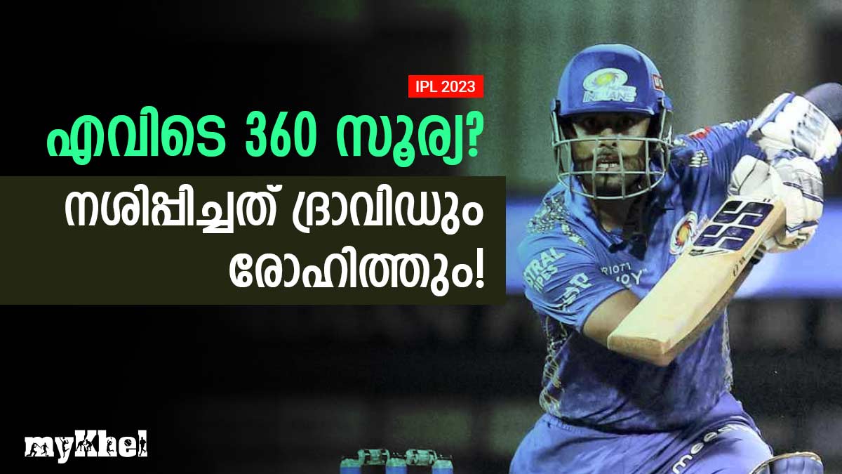 ഏറ്റവും അവസാനമായി തന്നെ സൂപ്പര് താര പദവിയിലേക്കുയര്ത്തിയ ഐപിഎല്ലില് മുംബൈ ഇന്ത്യന്സിലൂടെ അദ്ദേഹം ശക്തമായ തിരിച്ചുവരവ് നടത്തുമെന്ന് കരുതപ്പെട്ടെങ്കിലും ആദ്യ കളിയില് ഫ്ളോപ്പായി മാറി. 16 ബോളില് ഒരു ഫോറടക്കം 15 റണ്സാണ് സൂര്യക്കു നേടാനായത്. മൈക്കല് ബ്രെസ്വെല്ലിന്റെ ബൗളിങില് ഷഹബാസ് അഹമ്മദ് അദ്ദേഹത്തെ പിടികൂടുകയായിരുന്നു.