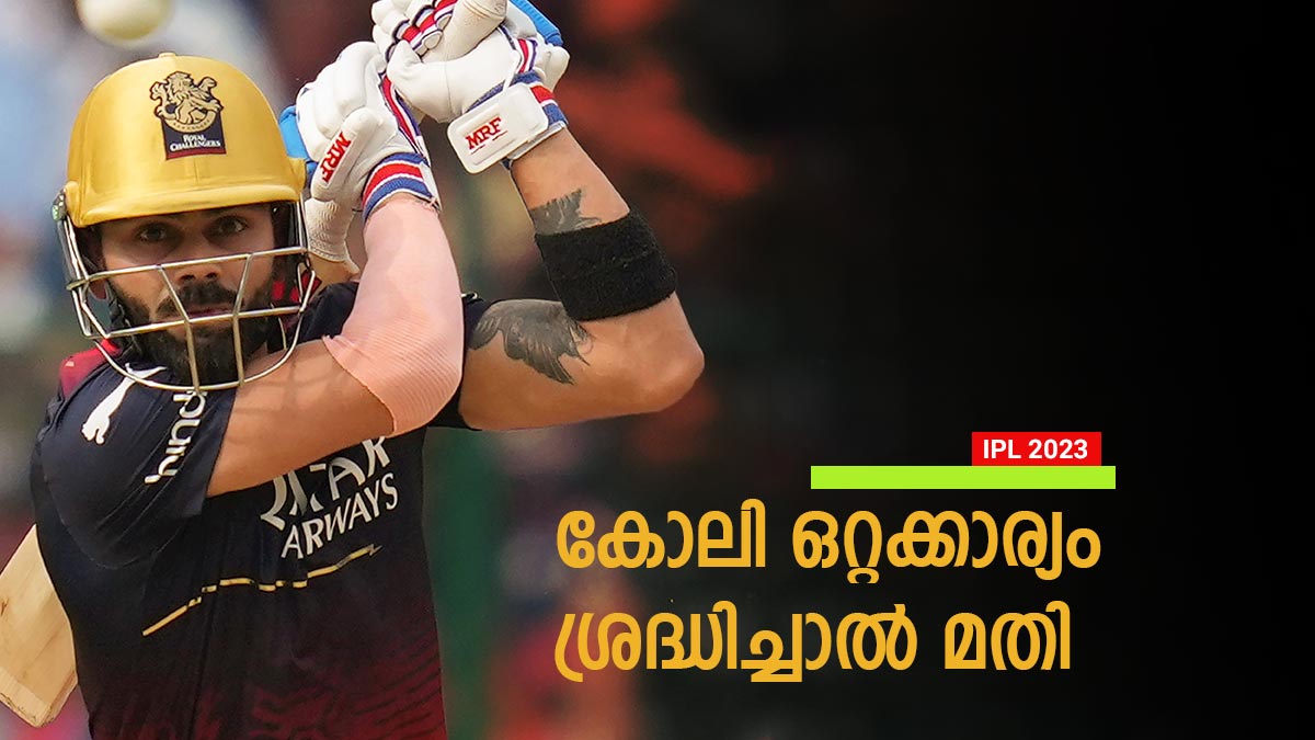 ഇത്തവണ നായകന് ഫഫ് ഡുപ്ലെസി കഴിഞ്ഞാല് ആര്സിബിക്കായി ഏറ്റവുമധികം റണ്സെടുത്തത് കോലിയാണ്. 10 മല്സരങ്ങളില് നിന്നും ആറു ഫിഫ്റ്റികളടക്കം 419 റണ്സാണ് അദ്ദേഹത്തിന്റെ സമ്പാദ്യം. 135.16 എന്ന സ്ട്രൈക്ക് റേറ്റോടെയാണിത്. ഡുപ്ലെസിയുടെ സ്ട്രൈക്ക് റേറ്റ് 157.71 ആണ്.