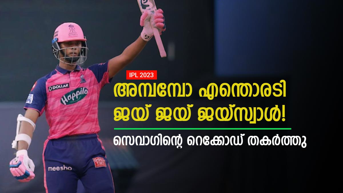 വമ്പനടിയോടെ തകര്പ്പന് റെക്കോഡും ജയ്സ്വാള് സ്വന്തം പേരിലാക്കി. ഐപിഎല്ലിലെ ഏറ്റവും ഉയര്ന്ന ആദ്യ ഓവര് സ്ട്രൈക്കറേറ്റില് രണ്ടാം സ്ഥാനത്തേക്കെത്തിയിരിക്കുകയാണ് ജയ്സ്വാള്. ആദ്യ ഓവറിലെ ജയ്സ്വാളിന്റെ സ്ട്രൈക്കറേറ്റ് 143.75 ആയിരുന്നു. വീരേന്ദര് സെവാഗിന്റെ 128.63 സ്ട്രൈക്കറേറ്റ് റെക്കോഡാണ് ജയ്സ്വാള് തകര്ത്തത്. 119.34 സ്ട്രൈക്കറേറ്റുമായി വിരാട് കോലി മൂന്നാം സ്ഥാനത്തും 116.36 സ്ട്രൈക്കറേറ്റുമായി ജോസ് ബട്ലര് അഞ്ചാം സ്ഥാനത്തുമാണ്.