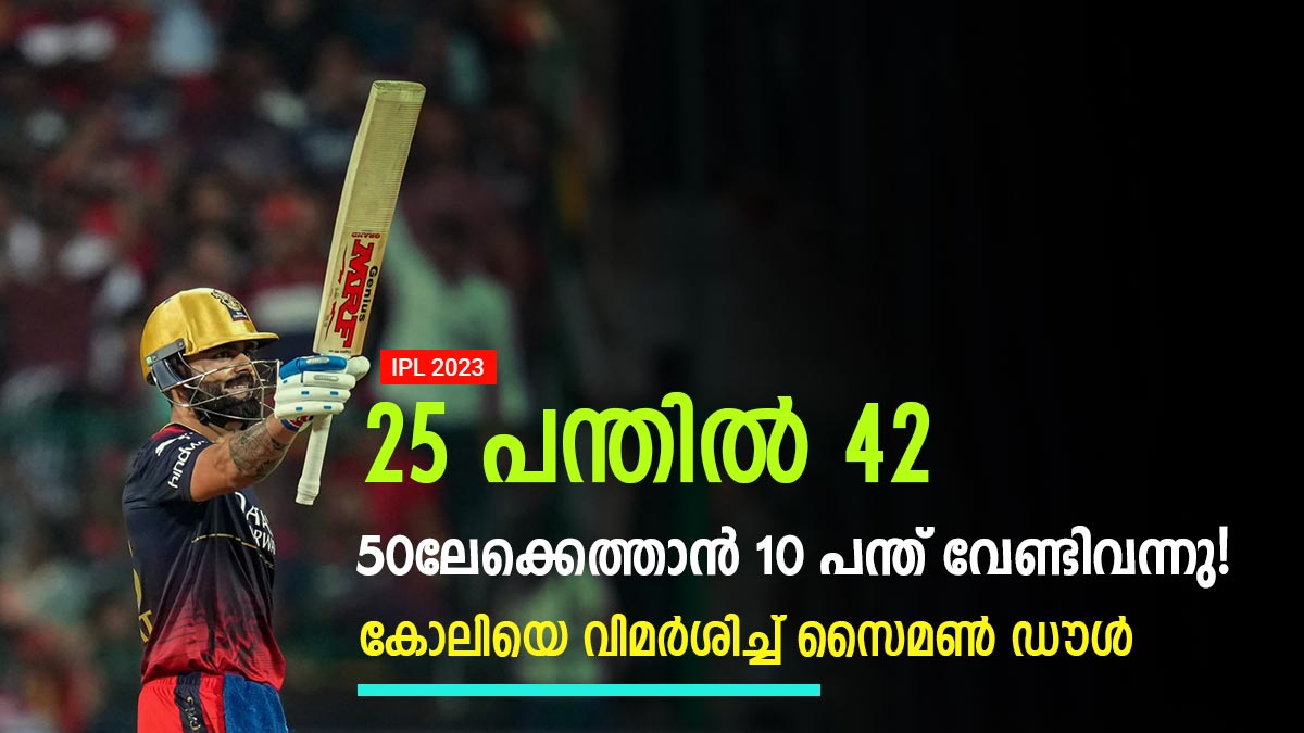 ചിന്നസ്വാമിയിലെ പിച്ച് ബാറ്റിങ്ങിന് അനുകൂലമാണ്. ലഖ്നൗവിനെതിരേ മികച്ച തുടക്കം ലഭിച്ച കോലി അതിവേഗം സ്കോര് ഉയര്ത്താന് തുടക്കത്തിലേ ശ്രമിച്ചു. എന്നാല് 40 പിന്നിട്ടതോടെ ഫിഫ്റ്റിക്കായി മെല്ലപ്പോക്ക് ബാറ്റിങ് നടത്തി. എന്നാല് കോലി ഈ സമയത്ത് കടന്നാക്രമിച്ച് പരമാവധി സ്കോര് ഉയര്ത്താനായിരുന്നു ശ്രമിക്കേണ്ടിയിരുന്നത്. ഫിഫ്റ്റിയും കണക്കുകളുമെല്ലാം പ്രധാനപ്പെട്ടതാണെങ്കിലും മുഖ്യം ടീമാണെന്നാണ് ഡൗള് അഭിപ്രായപ്പെട്ടത്.