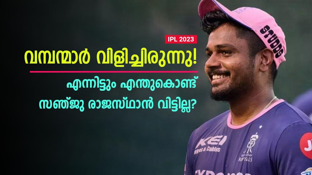 അവസാന മെഗാ ലേലത്തിന് മുമ്പ് സഞ്ജുവിന് പല പ്രമുഖ ടീമുകളില് നിന്നും ഓഫര് ലഭിച്ചപ്പോള് തീരുമാനം സഞ്ജുവിനെടുക്കാമെന്ന നിലപാടിലായിരുന്നു രാജസ്ഥാനുണ്ടായിരുന്നത്. എന്നാല് എല്ലാ ഓഫറുകളും നിരസിച്ച് രാജസ്ഥാനൊപ്പം തുടരാന് സഞ്ജു തീരുമാനിക്കുകയായിരുന്നു. എന്തുകൊണ്ടാണ് രാജസ്ഥാനില് തുടരാന് തീരുമാനിച്ചതെന്നതിനെക്കുറിച്ച് ഒരിക്കല് സഞ്ജു തന്നെ വെളിപ്പെടുത്തിയിരുന്നു.