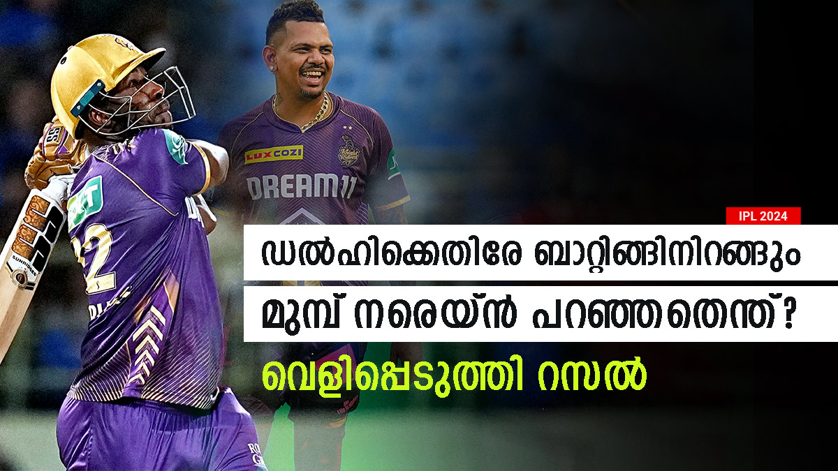 നെറ്റ് റണ്റേറ്റിനെ ഇത് സഹായിക്കും' റസല് പറഞ്ഞു. കെകെആറിന് അടിത്തറ പാകിയത് നരെയ്നാണ്. തുടക്കം മുതലേ ആക്രമിച്ച് ഡല്ഹി ബൗളര്മാരെ മാനസികമായി തളര്ത്താന് നരെയ്ന് സാധിച്ചു. പിന്നാലെയെത്തിയ ബാറ്റ്സ്മാന്മാര് ഇത് നന്നായി മുതലാക്കിയെന്നതാണ് വസ്തുത. എന്നാല് തുടക്കത്തിലേ ആക്രമിക്കുകയെന്നത് കുറച്ച് പ്രയാസമായിരുന്നുവെന്നാണ് റസല് പറയുന്നത്. 'തുടക്കത്തിലേ ഇത് വളരെ പ്രയാസമായിരുന്നു. സ്വിങ്ങുണ്ടായിരുന്നതിനാല് ബൗണ്ടറി കണ്ടെത്താന് ബുദ്ധിമുട്ടി.